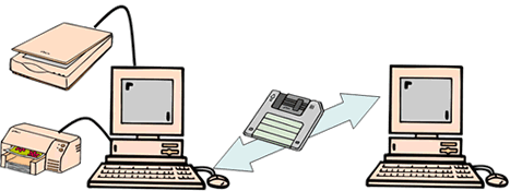 ※フロッピーディスクをコンピュータユーザー間で受け渡しする方法をスニーカーネットといいます。