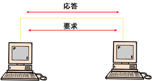 コンピュータが状況に応じてクライアントまたはサーバの役割をします。