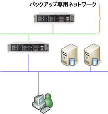 - コピーに時間がかかること、同一LAN上ではネットワーク負荷がかかるため専用ネットワークを導入した構成。