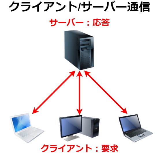 クライアント/サーバー通信は、要求を出すクライアントと、それに対して返答をしてサービスを提供するサーバーとに役割が分担されています。そのため情報資産などを一元的に管理でき、クライアントの追加なども容易に行えるようになっています。
