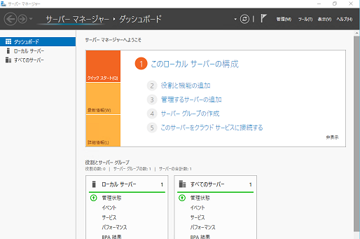ログインした後、しばらくすると自動的にサーバーマネージャーが起動します。