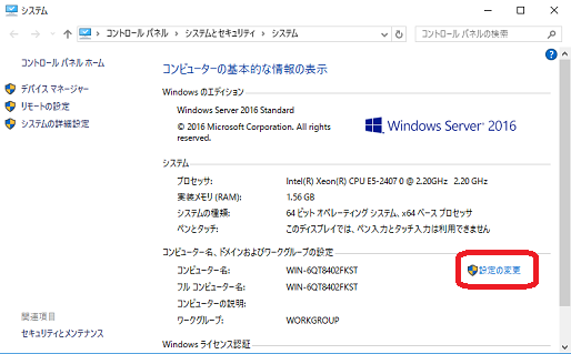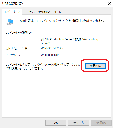 Windowsが自動的につけた「コンピュータ名」を変更します。