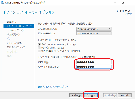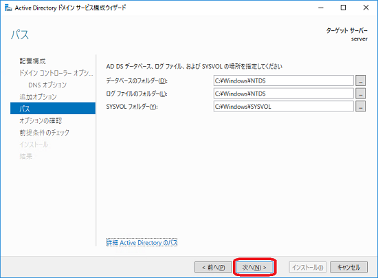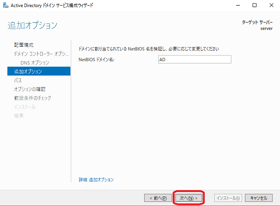 「Active Directory ドメインサービス構成ウイザード」が表示されます。