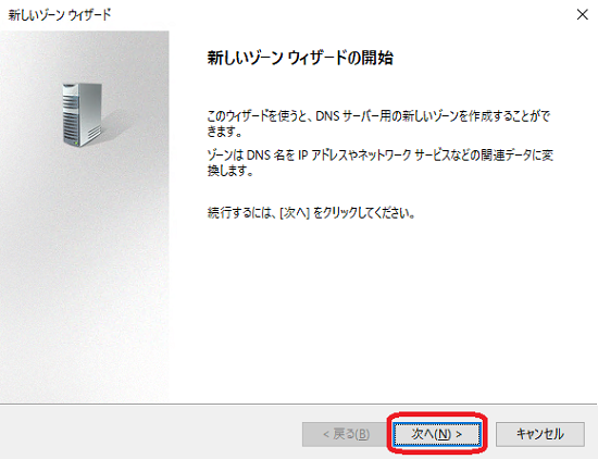 新しいゾーン ウィザードが表示されるので、「次へ」をクリックします。