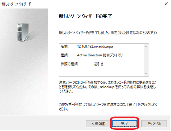 逆引き参照ゾーン、「192.168.12.x Subnet」の設定