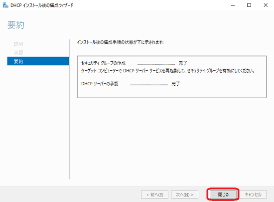 インストールが完了したら、「閉じる」ボタンをクリックします。