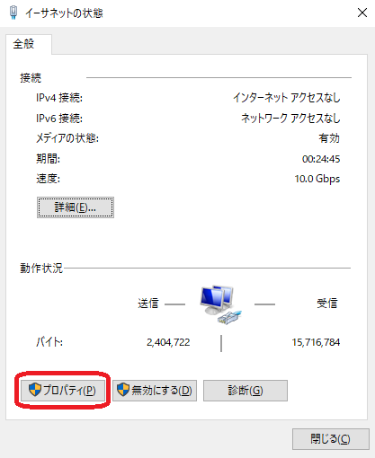 ローカルエリア接続のプロパティを表示する