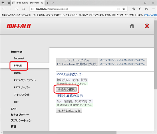 プロバイダ設定 ここでは、ADSLの設定例を示しますが、光回線の場合は基本的には、ルーターをOSUにつなぐだけです。 設定の必要はありません。 ADSL接続のプロバイダ設定の例 Internet-PPPoEの「接続先の編集」ボタンをクリックします。 プロバイダから送付されてきた書類などを見ながら入力していきます。 入力、設定したら、ウィンドウをスクロールし、「新規追加」ボタンをクリックします。 目次 BACK NEXT