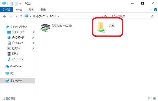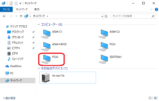 共有フォルダや共有プリンタを提供しているコンピュータをダブルクリックして開きます。