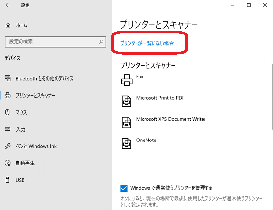 ない場合は、「プリンターが一覧にない場合」をクリックします。