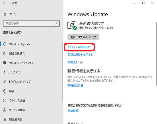 「アクティブ時間の変更」をクリックします。