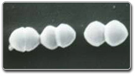 まず乳酸菌と聞いて、皆さんの中にはヨーグルトやチーズをイメージされる方が多いと思います。もともと乳酸菌とは、その名のとおり乳酸を多量に作る菌のことで、糖類をエネルギー源として乳酸を主要な代謝産物とする(消費した糖に対して50%以上の乳酸を作る)細菌の総称です。写真は分裂中の乳酸菌の電子顕微鏡写真です。現在、乳酸菌は発酵食品などの食品製造にとどまらず、バイオプリザベーション(乳酸菌が作り出す抗菌物質の作用により食品貯蔵性を高める方法)において、また、プロバイオティクス(腸内環境を改善するなど安全で身体によい影響を与える微生物)として、さらには、ポリ乳酸を原料とする生分解性プラスチックの生産といった工業分野など、幅広く活用されています。