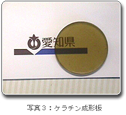 ケラチンパウダーから、圧縮加熱成形法を用いて半透明のケラチン成形板(フィルム)を試作しました(写真3)。この成形板は、毛織物以上の吸放湿性や生分解性を有していました。特に、土中埋設試験では約1ヶ月間で完全に消失し、急速な生分解性を示し、産業資材として天然由来の新しい生分解性プラスチックとしての可能性も有ります。