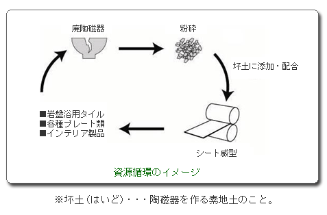 | ※「Re瀬ッ戸」のロゴマーク・・・「Re瀬ッ戸」とは(瀬戸市内の)家庭などで不用となったやきもの(廃陶磁器)をゴミとして処分しないで、原料として利用する新しいやきものの循環システム、製造プロダクト、そしてその商品をさします。3R(リユース・リデュース・リサイクル)の頭文字である「Re」と「瀬戸」を組み合わせた造語で、この名称・マークは愛知県陶磁器工業協同組合の登録商標です。