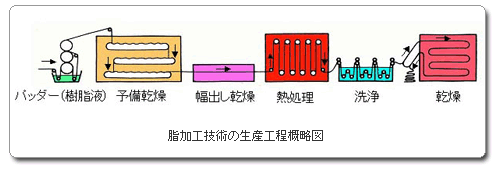 愛知県一宮市を中心とする地域は、日本の毛織物産業の中心として栄えてきましたが、中国を始めとする東南アジア地域からの低価格製品の輸入、消費者ニーズの多様化等の影響を受けて、産地規模が縮小して、織物の生産量は低下しています。このため、産地の繊維業界は、輸入製品との差別化を図るため、生き残りをかけて付加価値の高い特殊加工への取り組みやブランド力の向上等に努力しています。しかし、毛織物などの織物に、高い感性や機能性を付与する染色整理工程は、水を使用した湿式プロセスであり、各種の化学薬品(酸、アルカリ、樹脂、機能性材料である化学物質等)を大量に使用し、高温処理及び乾燥のために多量の重油や電気エネルギーなどを必要とするエネルギー大量消費型の方法です。