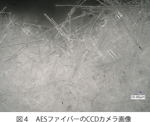 AESはAlkaline Earth Silicate Fiberの略称で、シリカ骨格の中にマグネシアとカルシアが分散した非晶質の繊維からできています。AESの構造もアスベスト(石綿)によく似通っていますが、AESは吸引等で人体に摂取されたとしても体内の水分によって分解・排出される特質を持っています。
