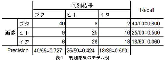 *2 Recall:1つの種類の入力画像が正答に判別された率(例:ブタの画像が正しくブタと判 別された率)