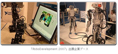 RoboDevelopment 2007」は、ロボットに関するソフトウェアなど技術面に焦点を当て、技術者間の情報交換や業界リーダーから最新技術を学ぶ場として企画されたイベントです。1000名以上の技術者、ロボットビジネス関係者が参加し、システムデザイン、システム開発、ビジョンシステム、インテリジェントシステム、物体認識、追跡、センサーなどに関する基調講演やセッションが行われたほか、小規模ではありましたが展示会が開催され、ロボットソフトウェア関連企業30社あまりの出展ブースにおいて出展者と参加者が熱心に情報交換を行っていました。