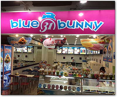 ところで、下の写真もすいぞくかんのを出たところにあったアイスクリームショップですが、これは「blue bunny」と「baskin robbins」のミックスではないですよね?