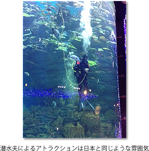 これは私の勝手な思い込みかもしれませんが、水族館はその国の経済や文化の発展レベルを如実に反映している・・・と思うのです。ま、見学している人々の姿勢が国によって違うのは何となく想像していただけるかと思いますが、展示内容というか、水族館全体の雰囲気というか、つまりは水族館そのものが国によって違います。
