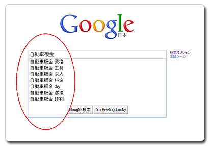 ヤフーやグーグルで検索バーに検索キーワードを入力すると、他に検索されている複合キーワードを自動的に表示してくれます。