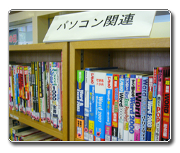 右側の棚はコンピュータ関係の書籍です。エクセルやワード、ウインドウズなどのテキストや、ネットワークや情報セキュリティなどについての書籍がずらりと並んでいます。