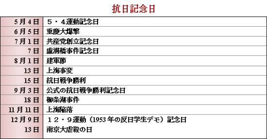 下記に一般的な抗日記念日を記しておきますので、参考にされて下さい。