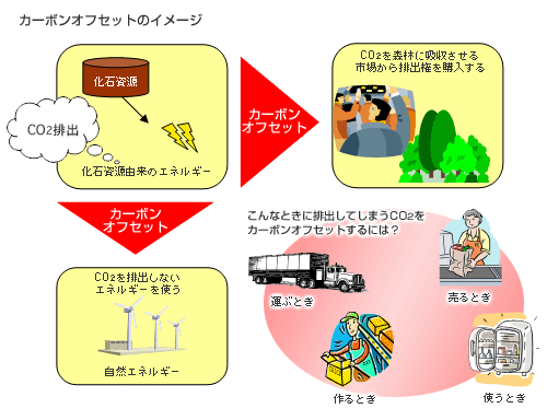 「カーボンオフセット付き年賀はがき」 が発売されるのをご存知ですか? 英語で「カーボン」は炭素、「オフセット」は相殺を意味します。商品を作るとき、使うときに排出される二酸化炭素を風力発電や植林事業に投資することで埋め合わせようという考え方で、欧州では英国を中心に急速に広まりつつあります。これに目を付けた商品が、日本でも次々と発売されています。