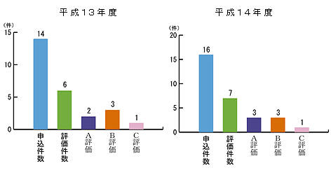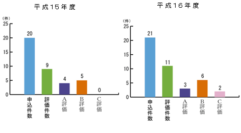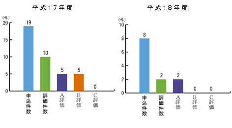 平成15年度、16年度、17年度は、評価件数が二桁近くありましたが、ここ2年は数社にとどまっています。しかし、提出されるビジネスプランは、かなり精査された内容で、即、市場に参入可能なプランであるのが特長です。