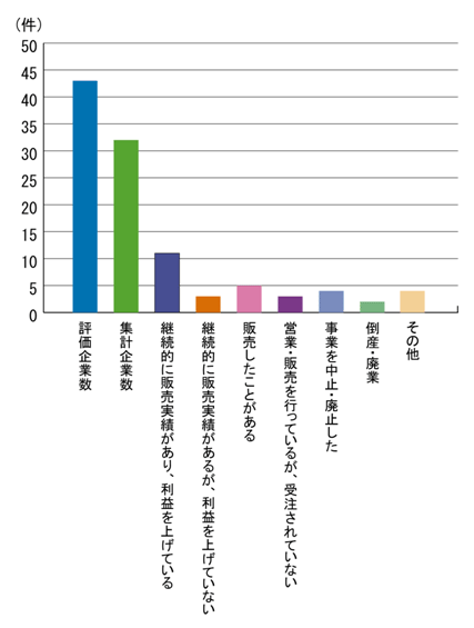 「継続的に利益を上げている」と、回答した企業は32社中11社、「利益を上げていない」3社、「事業を中止した」4社などが主な状況です。