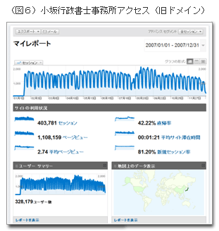 (図4)は、私がとても重視しているデータです。どこから私のサイトにやってきたかを示すデータです。私のサイト内(小坂行政書士事務所など)、検索エンジン経由、あるいは他のサイトからリンク経由で来訪しているというデータです。ここに今まで見なかったURLからのアクセスがあると、それは「知名度の上昇」を示しています。私の場合、他人のブログで紹介されたり、Q&Aサイトで勝手にリンクを貼られたりすることも多くあります。