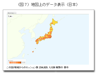 特に「地図上のデータ表示」(図7)は、非常に面白く、ついつい時間を忘れてデータを眺めてしまいます。ラテンアメリカやアフリカなどからのアクセスがあると、とてもワクワクしてきます。海外と言えば、ドイツ、イギリス、米国などから実際にお仕事をいただいています。ホームページが取り持ってくれたご縁です。しかも私はこういったデータや数字が嫌いではないので、アクセス解析を楽しむことができているのかもしれません。SEOに凝っていた頃は、「アクセス日誌」までつけていたことがあります。「仮説」と「検証」の繰り返しです。