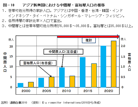 アジア新興国における所得階層別人口の推移が、通商白書2010に掲載されておりますが、