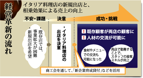松浦代表には、ハミングバードの開店以来、あま市商工会に信頼を寄せる担当の早川さんがいた。息子の修行が終わり、ようやく出店の目途がついた頃いつものように相談した。「叔母の経営する日本料理店を改装してイタリア料理店を開店したい。どこで融資を受けるのがいいかな」(松浦代表)、「状況を詳しく教えて下さい。『経営革新計画』の支援策を使って融資を受けられるんじゃないかな」(早川さん)こうして、タイミングよく「経営革新計画」に出会うこととなった。