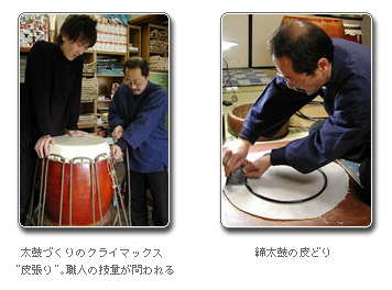 親父、息子、娘が太鼓奏者として活動し、常に使い手(顧客)の立場で考え、納得のいく太鼓を作り出すことを使命としています。