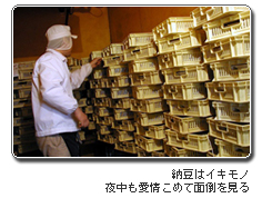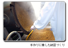 機械化による大量生産はせず、納豆ひとつひとつに愛情を込め、手抜きをしない納豆づくりをしています。
