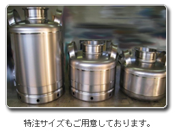 今回の製品は、醸造熟成用純チタンタンクをご紹介いたします。この製品は、原材料のチタンの性質である軽くて、丈夫、さらに錆びにくい等の特性を生かしたボトルタンクです。