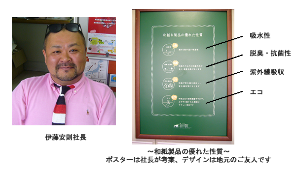 和紙が持っている特性(吸湿性、通気性、放湿性)が素晴らしいこともありますが、大手が容易に参入できないこと、そして海外へも進出できることが大きな魅力です。日本の和紙は世界の絵画修理にも使用されています。また、自然から出来た素材のためエコロジーでもあります。