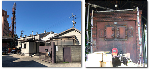 太陽食品工業株式会社は、名鉄「須ケ口駅」から200mの所にあります。名鉄「須ケ口駅」は、名鉄名古屋本線と名鉄津島線が分岐する駅です。駅又は車窓(進行方向左の窓)から見える茶色の煙突が目印です。その下には赤レンガの建物も垣間見ることができます。煙突も赤レンガの建物も現在は稼働していませんが、太陽食品工業株式会社のシンボルです。