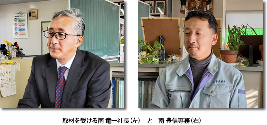 通常、取材中は社内の写真撮影を致します。その時に、従業員の後ろ姿や手元を意識して撮りますと説明すると、会社パンフレットは従業員が話し合って作成し、顔写真も掲載しているため、顔を出すことは大丈夫と南社長から言われました。仕事に対して真摯に取り組む姿勢の表れと感じました。