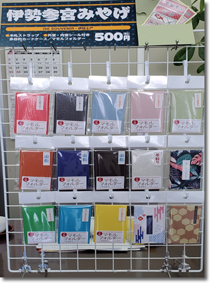 写真はお伊勢さんの土産物屋さんの一角にある販売キッドです。シールとそれを入れる紙フォルダーをセットした製品です。