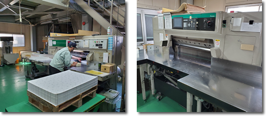 10年前に投入した大型印刷機と最近導入した大型印刷機の2台を使用しています。版を大型機械に設定すると1台で1日15,000枚〜18,000枚の印刷ができます。乾燥時間が短いUVインクを使用することで早い、大量、綺麗な仕上がりを造り出しています。