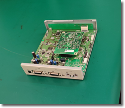 依頼によっては組み立ても行います。写真がその一つです。複数のプリント基板と電子部品を指定のケースに組み入れる作業です。