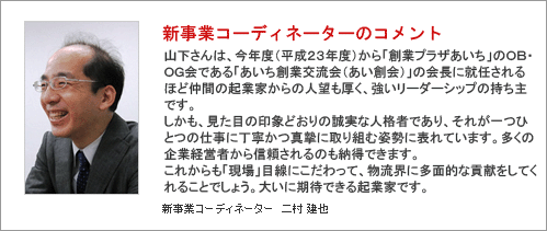 これまでサラリーマン生活を続けてきたなかで、いざ創業するにも方法もわからず模索していたところへ、インターネットで「創業プラザあいち」を知りました。