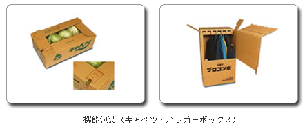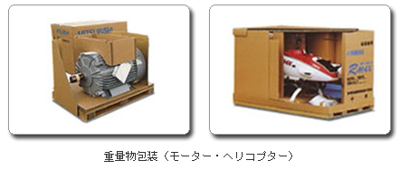 400kgのモーター、総積載量700kgに及ぶ広幅ロール品、農薬散布用途の無人ヘリコプターなどの重量物包装、簡易ロックのキャベツ梱包ダンボール、オールダンボールの引越し用ハンガーボックスなどの機能包装などは当社の提案によるものである。
