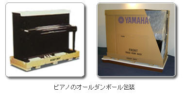 ヤマハより依頼を受けた「アップライトピアノのオールダンボール包装」では、1年以上を要した。ピアノはキャスターで支えられる部分荷重であり、その上、後ろから1/4の位置に重心がある偏荷重でもある。重量は1台300kgで保管は3段積みをするため、総重量は900kgにも及ぶ非常に難しい梱包物である。