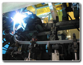 軽自動車や小型自動車のドアサッシュなどドア部品に使用される板圧は0.7mm。溶接物の剛性が小さいため変形しやすく、その度合いも大きい。しかも溶接物はロール成形品は中空状になっており、溶け落ちなどの変形を押さえる方法もない。こうした悪条件下での溶接を行うのが当社の技術でありノウハウである。