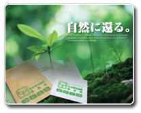 当社に限らず包装資材業界は、最後はゴミになってしまう商品を扱っている、というジレンマが宿命的にあります。であるからこそ、リサイクルやリターナブル、環境にやさしい素材の使用ということには敏感になります」とのこと。 例えば、スーパーで回収された食品トレイをメーカーへ返すという地道な活動や、繰り返し使える荷崩れ防止製品の開発、内部の緩衝材がワンタッチで外せて分別・再利用ができるクッション付き封筒の開発などもその一例である。
