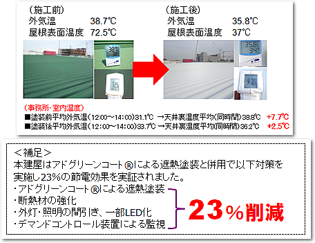当社の提案は「省エネ」全般にわたり、新電力の提案以外で現在注目を浴びるのが、遮熱塗料「アドグリーンコート」である。