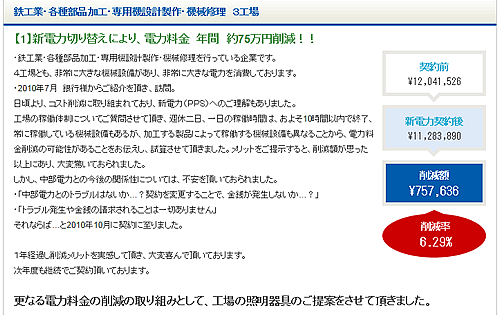 その結果、電気料金全体に占める固定料金としての基本料金の割合は大きくなる。したがって、基本料金を安くできれば電気代のコスト削減率は大きくなり、企業メリットも大きい。 当社は、エネリンク社の価格交渉力を活用し、基本料金単価を安くすることで、割合の大きい基本料金部分を引き下げる提案を行なっており、こうしたムラの大きい企業ほど、電気代の「固定費」削減策として歓迎されている。